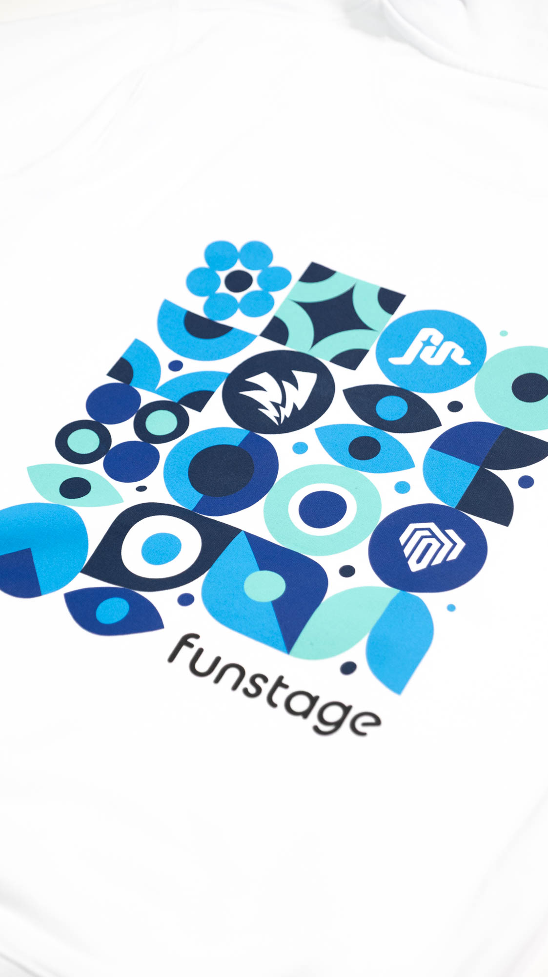 Der weiße Funstage Hoodie kombiniert minimalistisches Design mit einem auffälligen Backprint, der spielerisch die Welt der Funstage einfängt. Auf der Vorderseite sorgt das dezente Logo für einen modernen Look, während die Rückseite mit einem geometrischen Print in Blau- und Türkistönen überrascht. Gefertigt aus hochwertiger Baumwolle, angenehm und perfekt für jeden Tag.